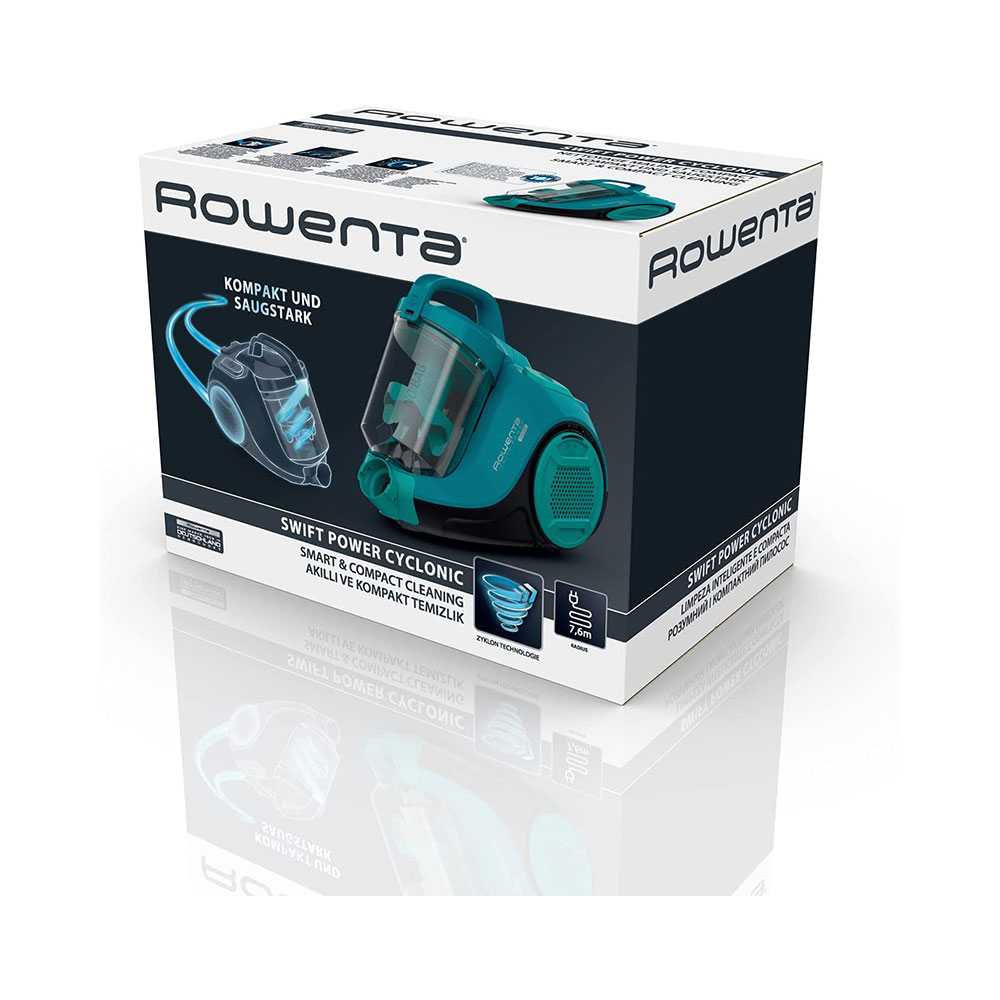 La aspiradora Swift Power Cyclonic de Rowenta consigue una limpieza a fondo y presenta una estructura compacta que facilita las tareas cotidianas del hogar. Su tecnología ciclónica avanzada se combina con un cabezal de alto rendimiento que aspira la suciedad de manera eficaz, lo que la convierte en un producto ideal para la limpieza diaria. Asimismo, reúne todas las ventajas de la tecnología moderna en una aspiradora con un diseño compacto que facilita su manipulación y almacenamiento.