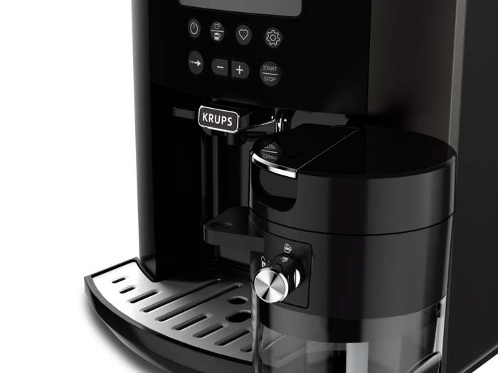 La cafetera espresso automática Arabica Latte es muy fácil de usar y garantiza una calidad excepcional. Ofrece unos resultados profesionales en todas tus bebidas preferidas, desde los deliciosos ristretto y lungo hasta el irresistible y cremoso cappuccino. Su accesorio de leche se ha simplificado para poner el cappuccino perfecto al alcance de tu mano. Su pantalla LCD extragrande te permitirá disfrutar de una sensacional e intuitiva experiencia al preparar tu café. El sistema Quattro Force de Krups te ofrece un café de sabor excepcional gracias a su tecnología especialmente diseñada para optimizar los procesos de molido, compactación, infusión y autolimpieza.