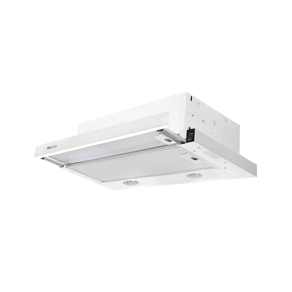 Campana extractora tradicional extraplana telescópica, integrable en mueble, acabado en color blanco.