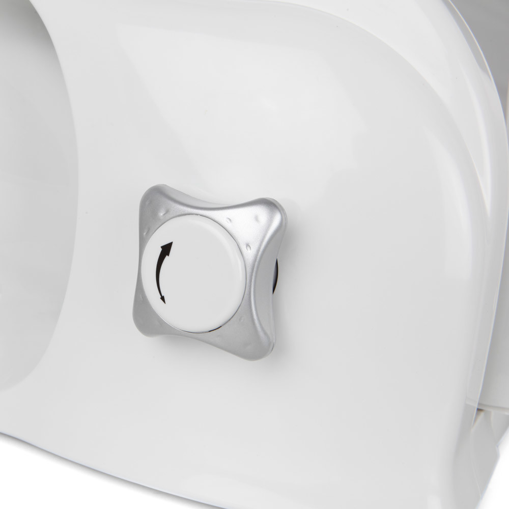 Al igual que el resto de los productos de la gama Orbegozo, la cortadora blanca MS 4200 cumple con los más altos estándares de calidad. Por ello, tiene integrado un botón que permite regular 3 velocidades de cortado, así como también tiene un deslizador extraíble y completamente seguro. También es posible ajustar el grosor del corte, lo que aporta una gran libertad en el momento de cortar los fiambres. Adicionalmente, esta cortadora blanca incluye una bandeja para fiambre.