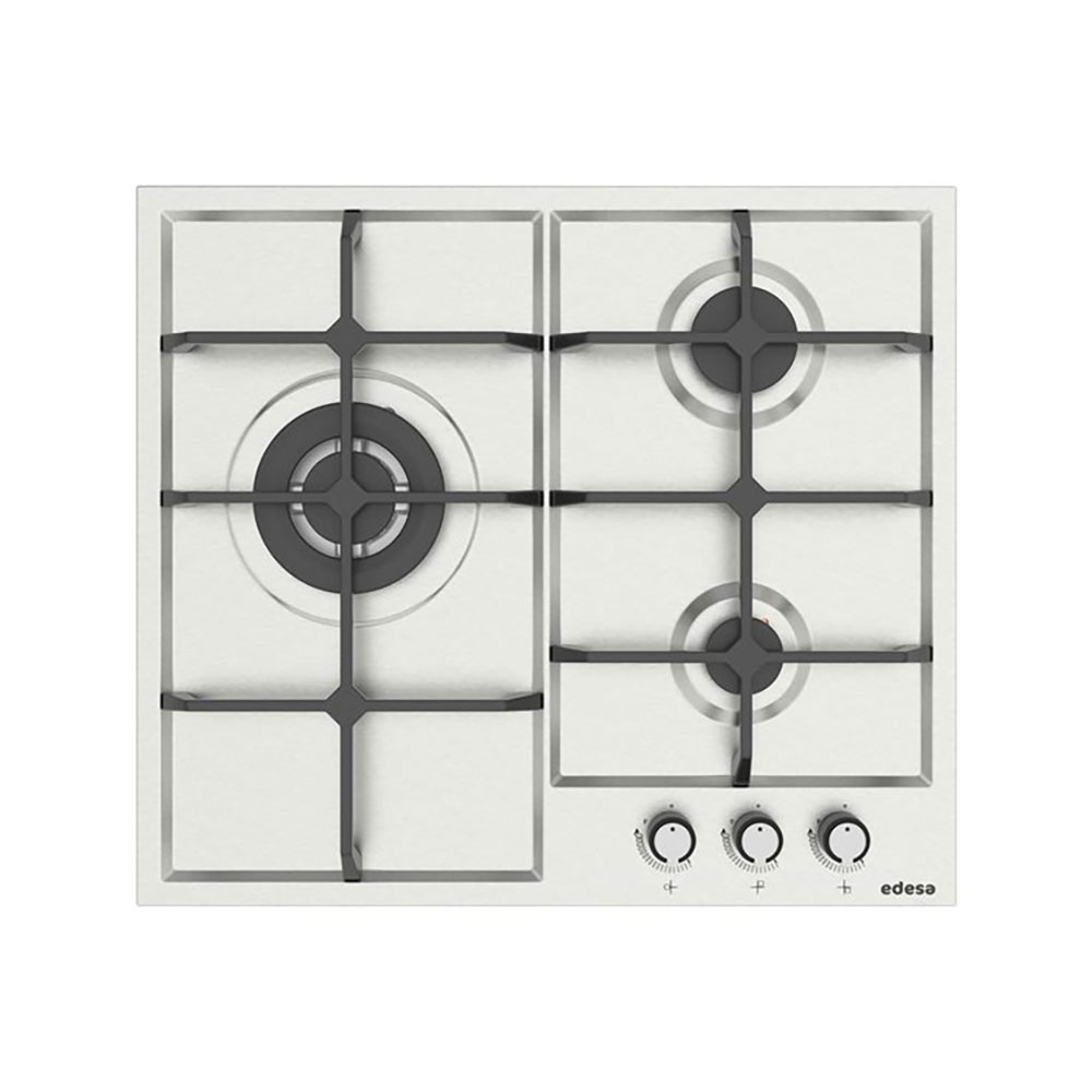 Características Técnicas: Placa De Gas Butano Con 3 Quemadores Con 2 Parrillas De Hierro Fundido Sobre Superficie De Acero Inoxidable (Triple Corona, Semi-Rapido Y Auxiliar). Mandos Frontales. Encendido Electronico Integrado En Mando. Sistema De Seguridad De Corte De Gas. Potencia Total Gas: 6,55 Kw. Dimensiones (Ancho X Fondo X Alto) : 590/580 X 522/510 X 112,5/97 Mm
