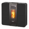 Esta estufa ahorradora de espacio se instala a ras de la pared, gracias a la colocación del racor en T en el interior del cuerpo de la estufa y la canalización tanto vertical, para calentar un compartimento en la planta superior, como posterior para calentar un compartimento adyacente. la habitación donde está instalada la estufa.