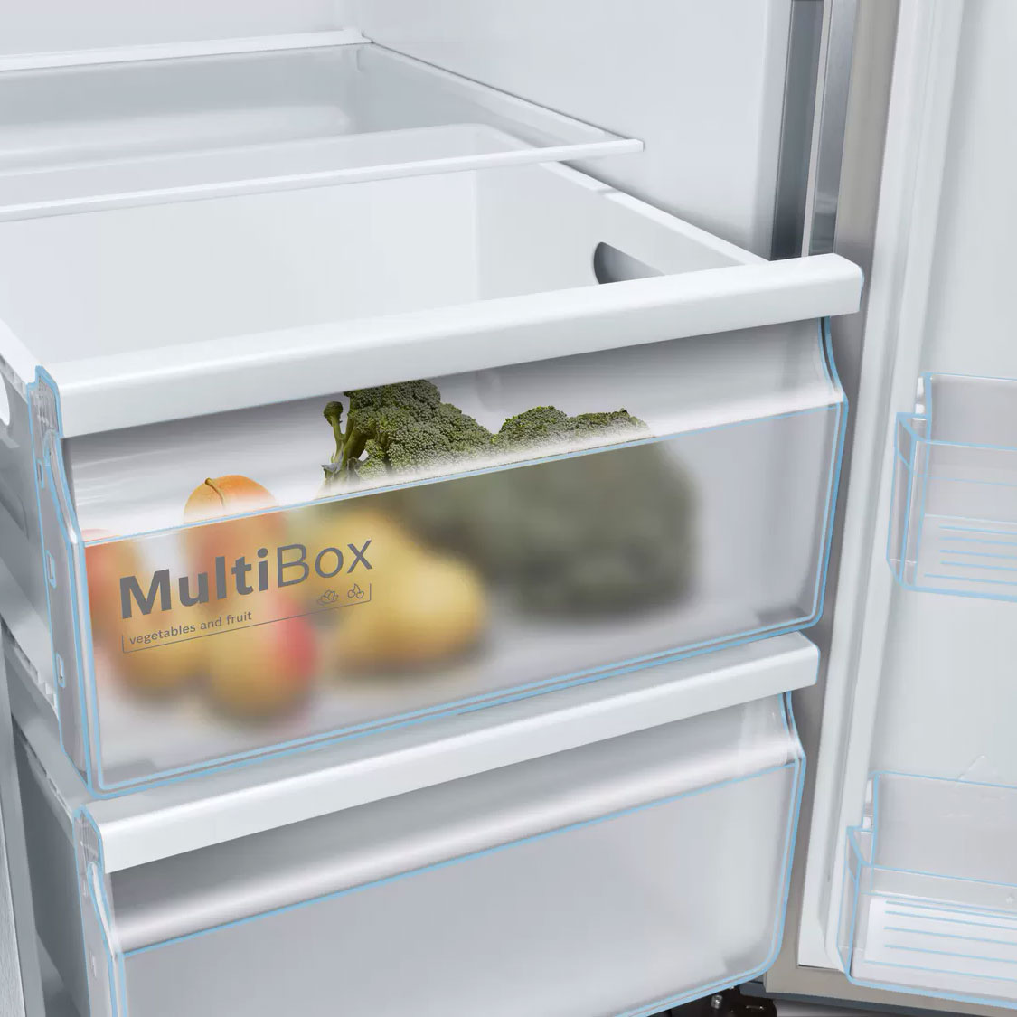 - Cajón MultiBox: transparente y con base ondulada, ayuda a la conservación de tus frutas y verduras.