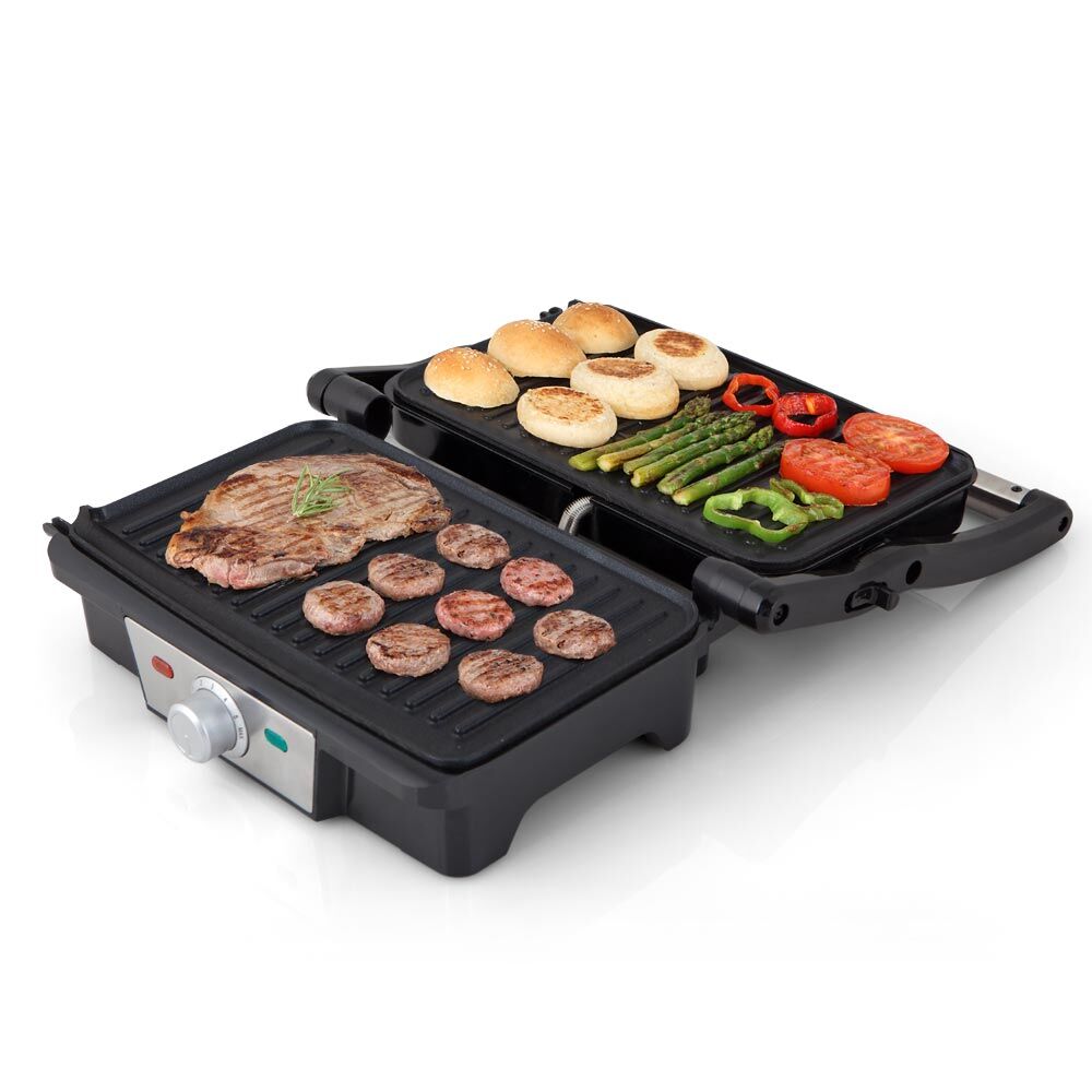 Asar es más sencillo con el grill inoxidable de Orbegozo. Cocinar sin aceite se hace funcional cuando contamos con un equipo tan eficiente. No será necesario vigilar la cocción y todo el control estará en tus manos. Lo innovador de este producto es su sistema de apertura de 180 grados. Este grill tiene dos superficies de asado; cada comida puede cocinarse de forma independiente, bajo el mismo calor.