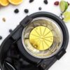 • Disco con recubrimiento de titanio que mejora la dureza y mantiene un afilado más duradero; canal de entrada xxl de 75 mm para introducir frutas y verduras enteras