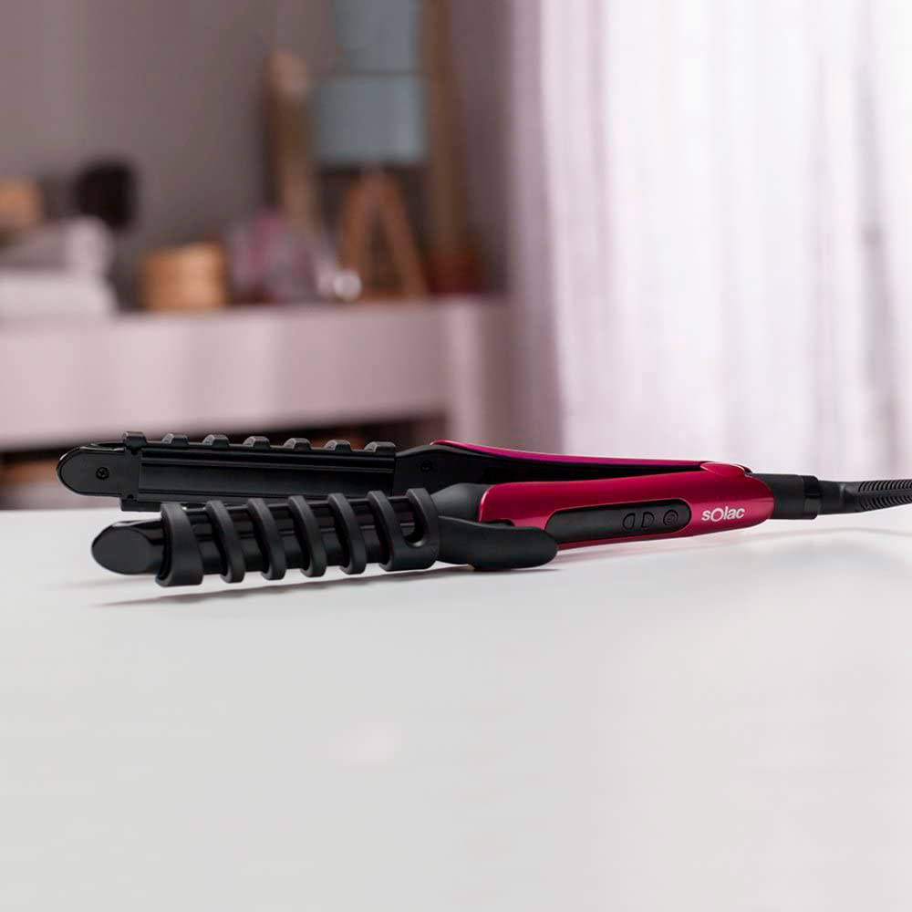 Moldeador 3 en 1: alisa, riza y moldea. Placas cerámicas con turmalina para una melena sana y brillante, libre de encrespamiento. Múltiples looks con una sola herramienta.