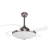 Este moderno ventilador mantiene las aspas recogidas mientras el aparato se mantiene apagado. De esta forma, el ventilador mantiene una apariencia más cercana a una elegante lámpara y se integra mejor en la decoración de la estancia.